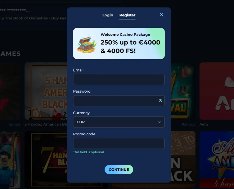 Gå till Moana Casino, klicka på ”Registrera”, fyll i ditt namn, adress, e-post och födelsedatum, sätt ett starkt lösenord, bekräfta sedan din e-post och ladda upp ID- och adresshandlingar.