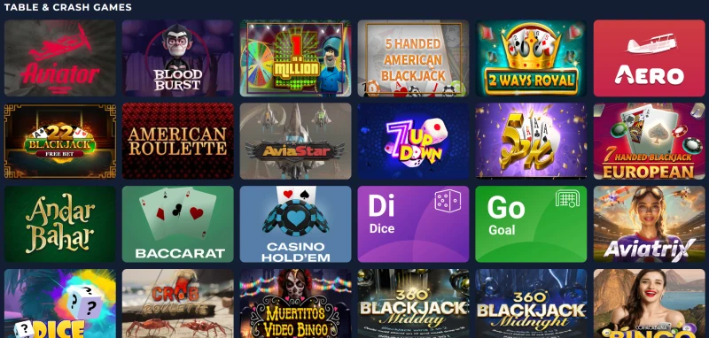 Bredvid dessa hittar du snabba mines- och bombspel som 1Tap Mines och Gold Mines, tärningsspel och Hi-Lo-varianter, samt skrap- och bingostil instantvinster. Klassiska RNG-bord finns också här, inklusive flera blackjack-format, roulettevarianter, baccarat, Andar Bahar och videopoker - alla utformade för snabb spel och flexibla insatser på mobilen.