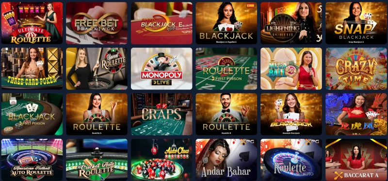 Crazy Time, Monopoly Live, Mega Ball, Craps Live |